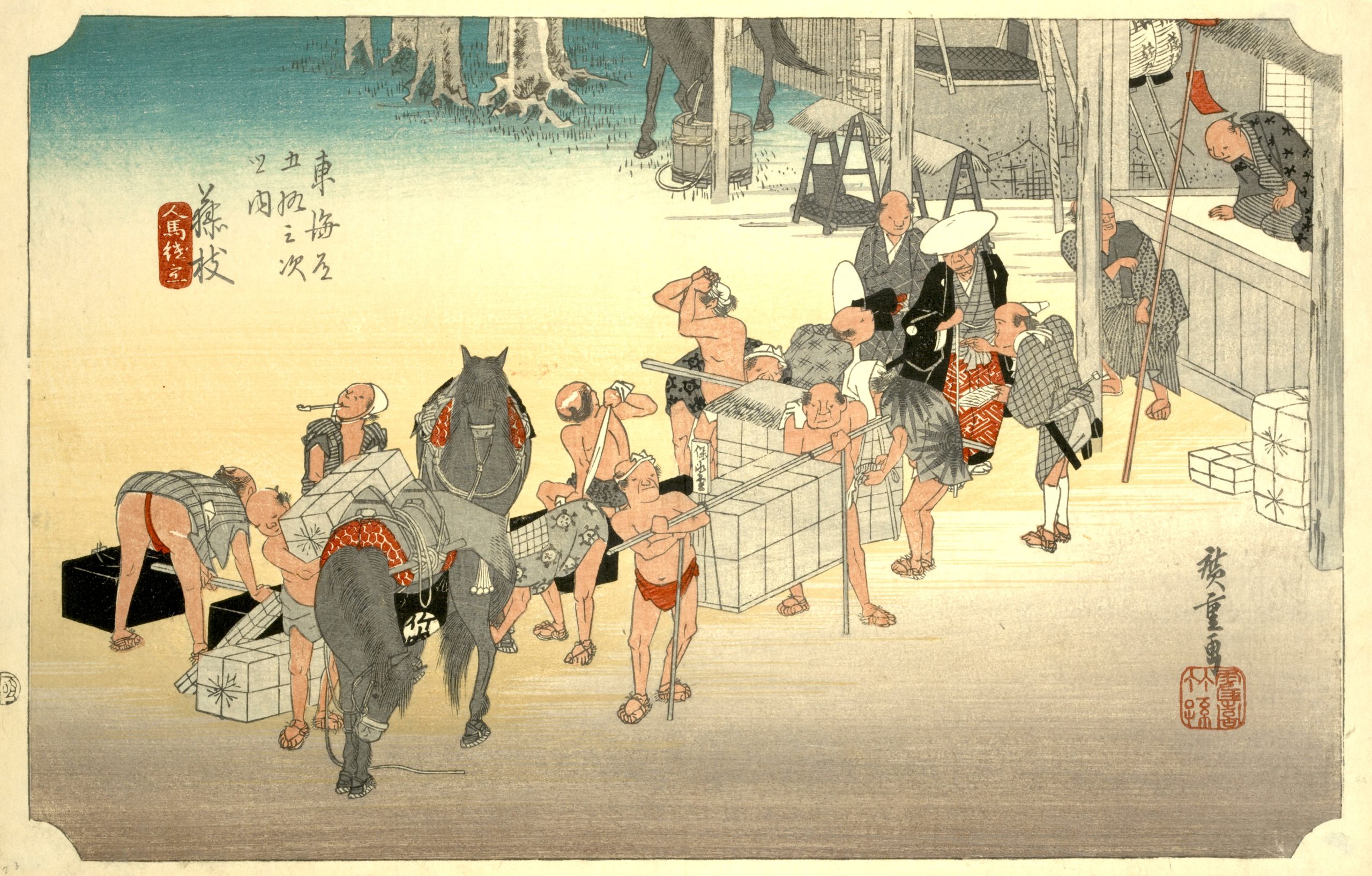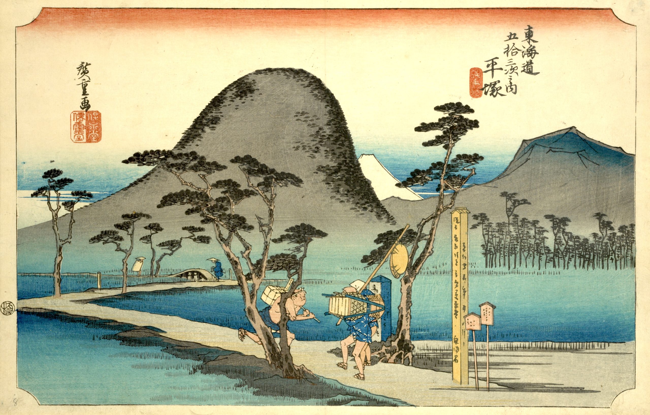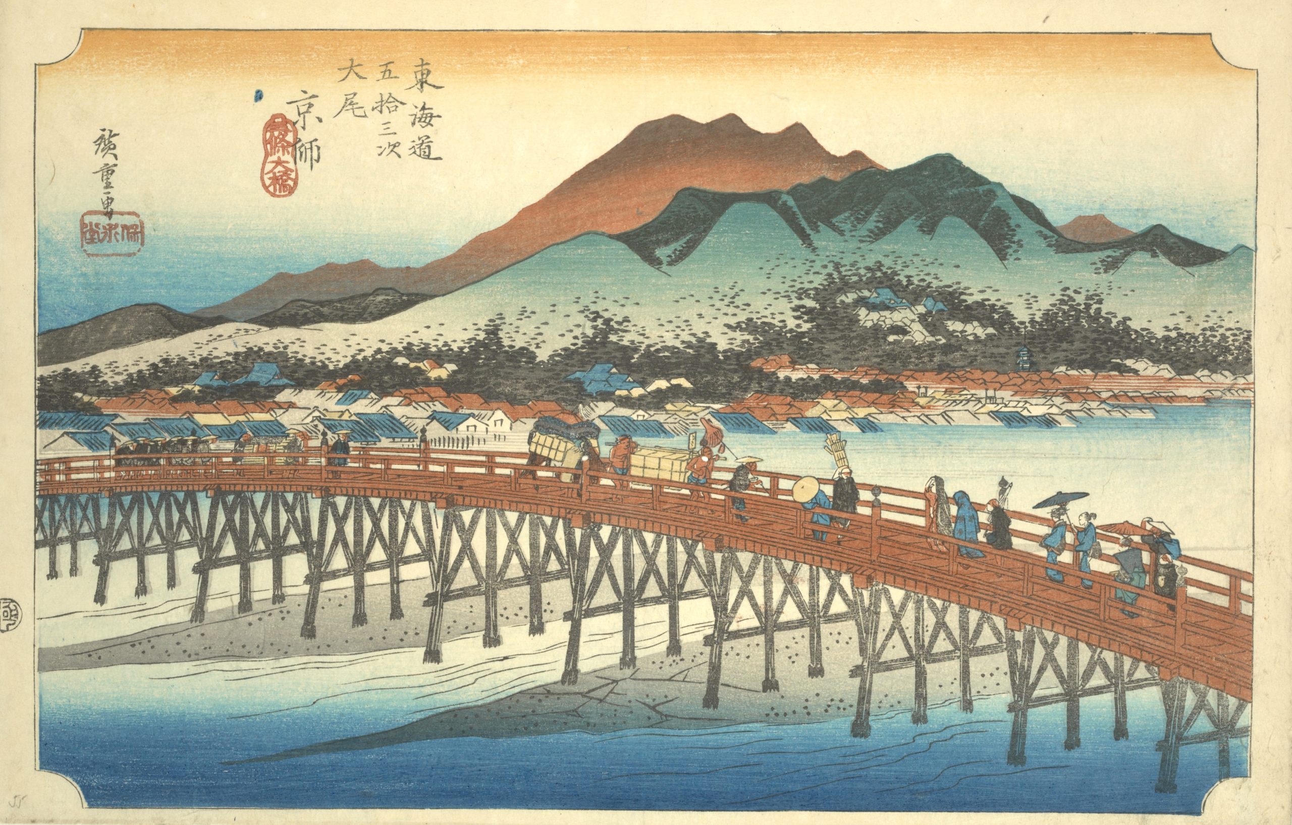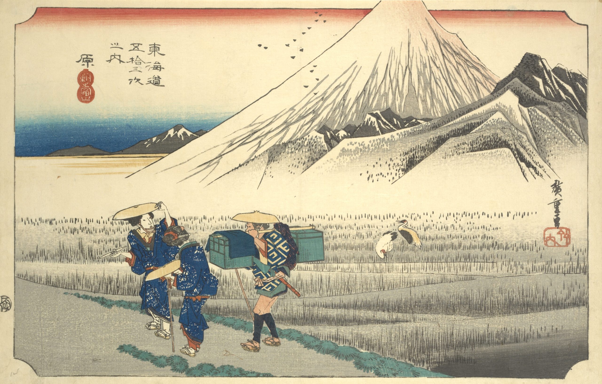 Utagawa Hiroshige’s The Fifty-Three Stations of the Tokaido is a celebrated series of landscape prints from Japan’s Edo period, and it remains a timeless masterpiece in Japanese art. This collection of 55 woodblock prints depicts the journey along the Tokaido, the main route connecting Edo (now Tokyo) to Kyoto. The series includes views of 53 post stations where travelers could rest along the way, as well as scenes from the starting point at Nihonbashi in Edo and the endpoint in Kyoto and Osaka. |