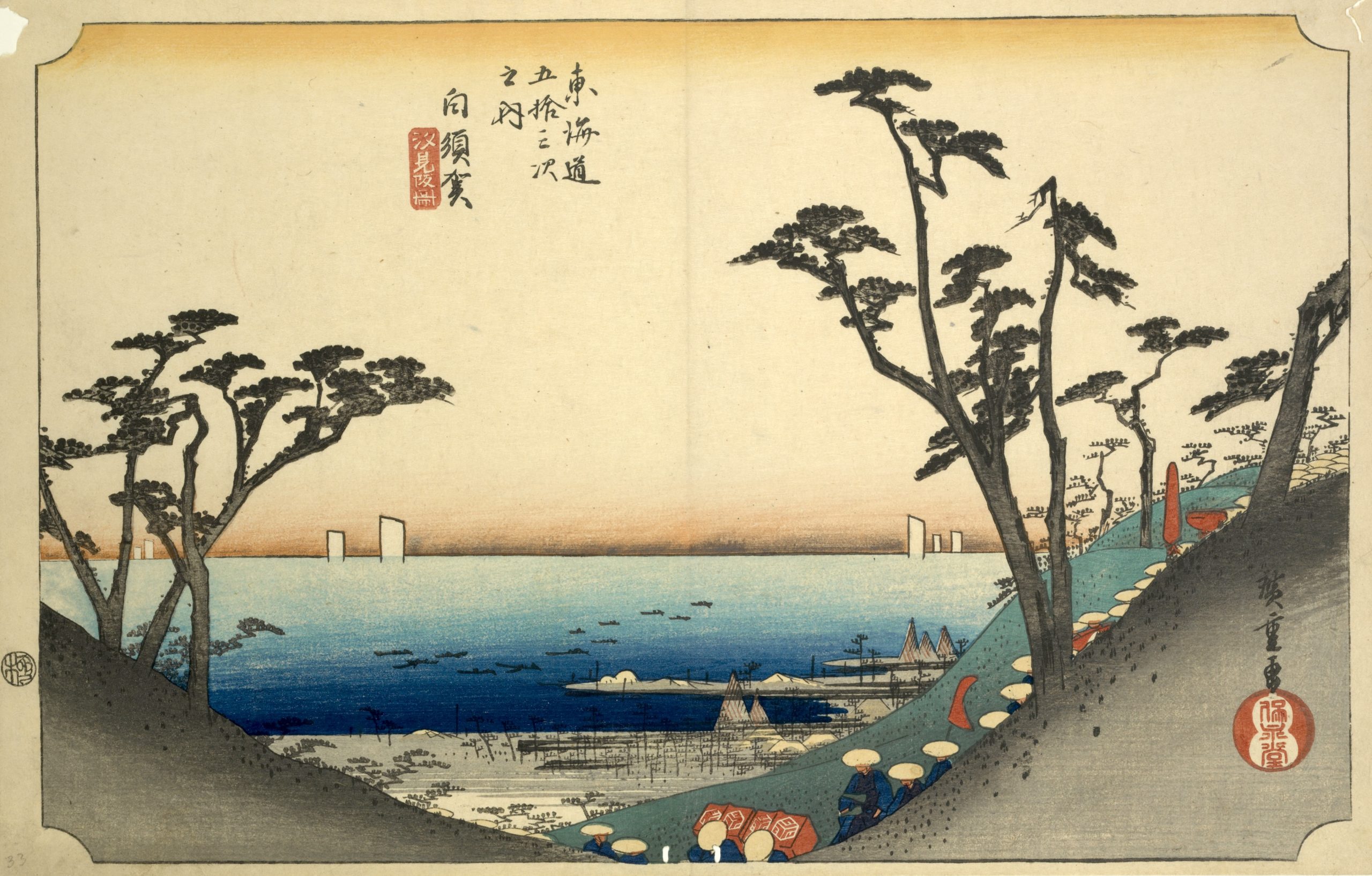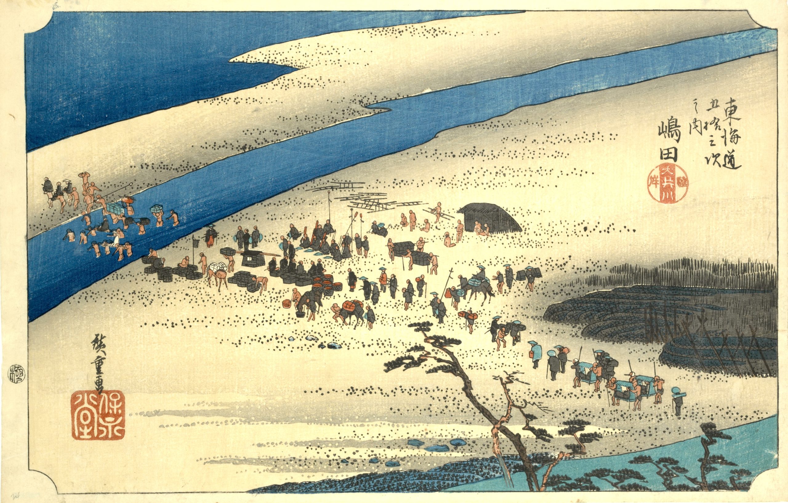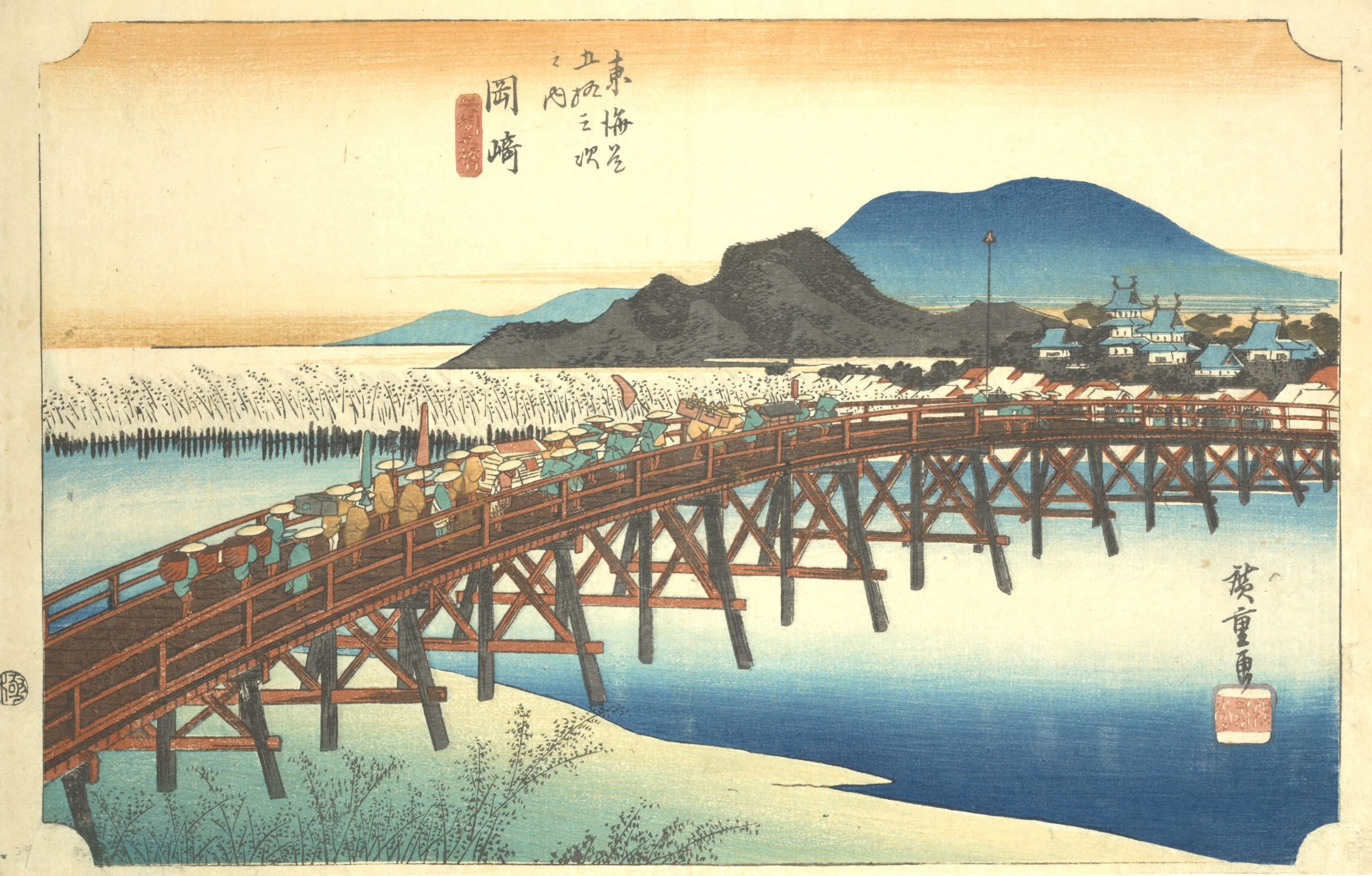 Utagawa Hiroshige’s The Fifty-Three Stations of the Tokaido is a celebrated series of landscape prints from Japan’s Edo period, and it remains a timeless masterpiece in Japanese art. This collection of 55 woodblock prints depicts the journey along the Tokaido, the main route connecting Edo (now Tokyo) to Kyoto. The series includes views of 53 post stations where travelers could rest along the way, as well as scenes from the starting point at Nihonbashi in Edo and the endpoint in Kyoto and Osaka. |