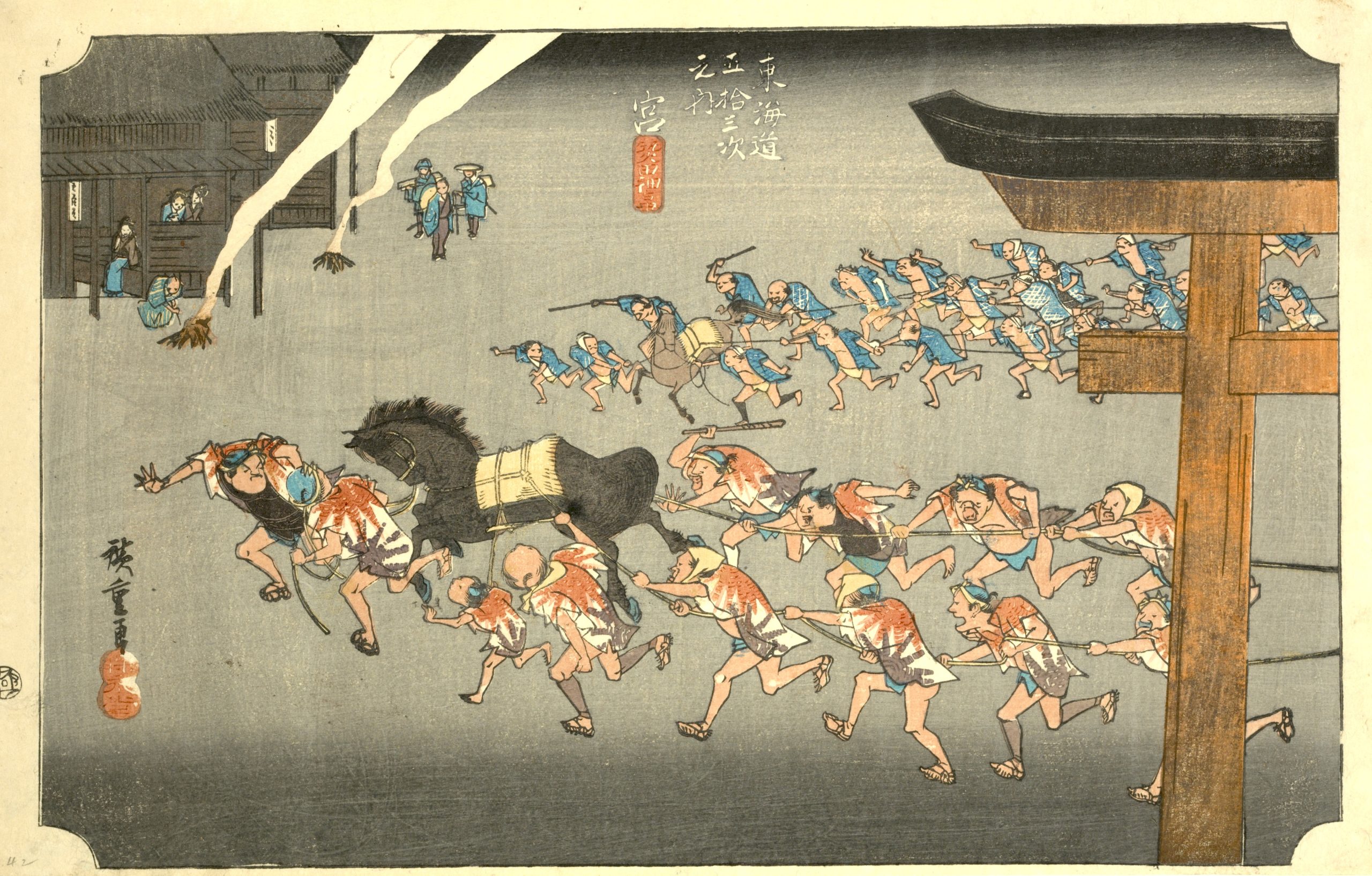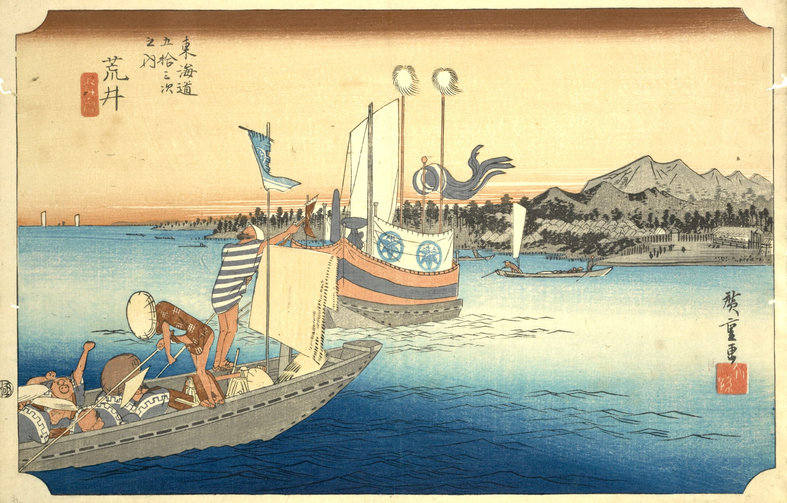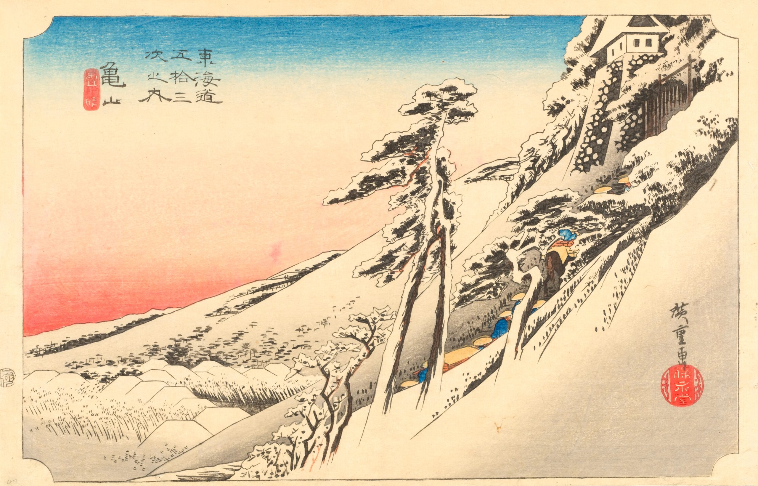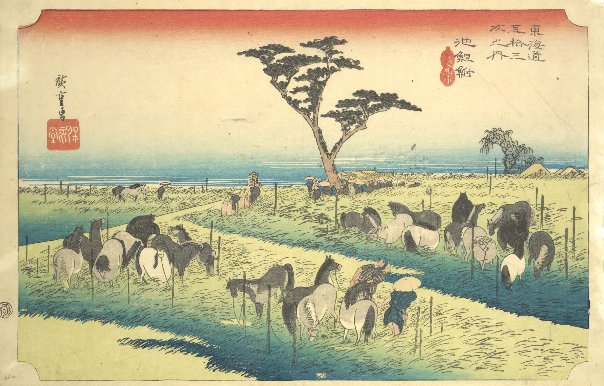 Utagawa Hiroshige’s The Fifty-Three Stations of the Tokaido is a celebrated series of landscape prints from Japan’s Edo period, and it remains a timeless masterpiece in Japanese art. This collection of 55 woodblock prints depicts the journey along the Tokaido, the main route connecting Edo (now Tokyo) to Kyoto. The series includes views of 53 post stations where travelers could rest along the way, as well as scenes from the starting point at Nihonbashi in Edo and the endpoint in Kyoto and Osaka. |